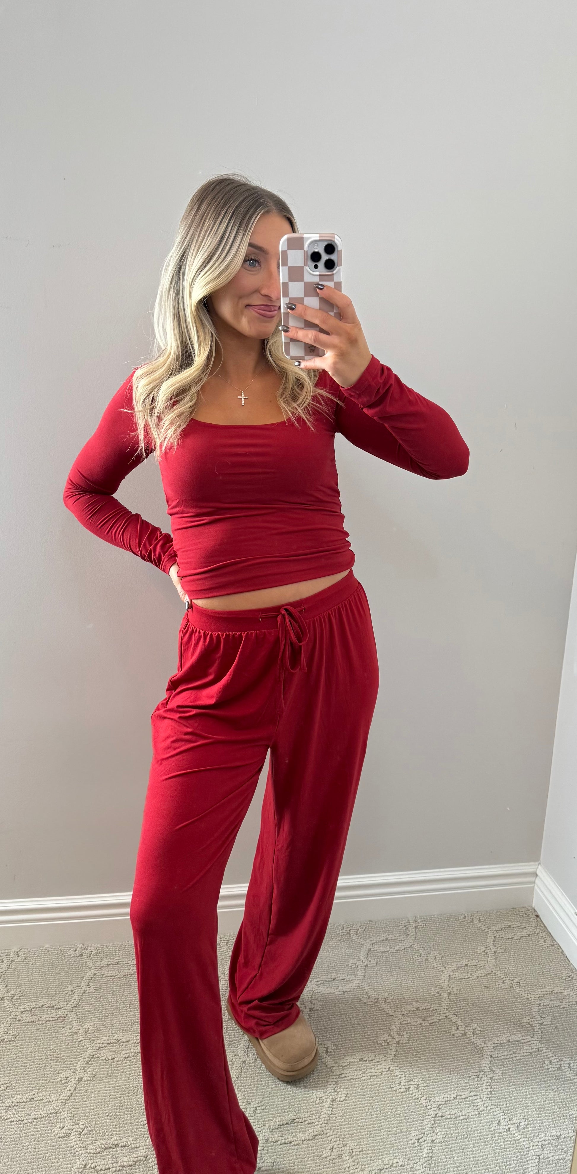-Comfy, relaxed wide-leg pants with a drawstring tie and soft knit fabric.