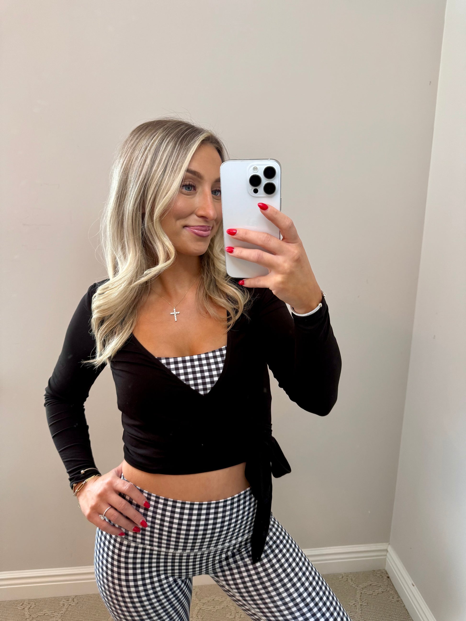 Long Sleeve V Neck Wrap Top (BLACK)